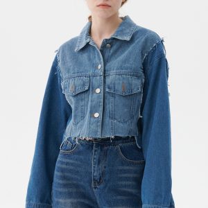 Dakota Denim Jacket Frayed raw edge Button down front Cropped length Color block detail Product Specification :100% Cotton Professional Clean […]