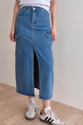 - Olivia Cargo Denim Skirt